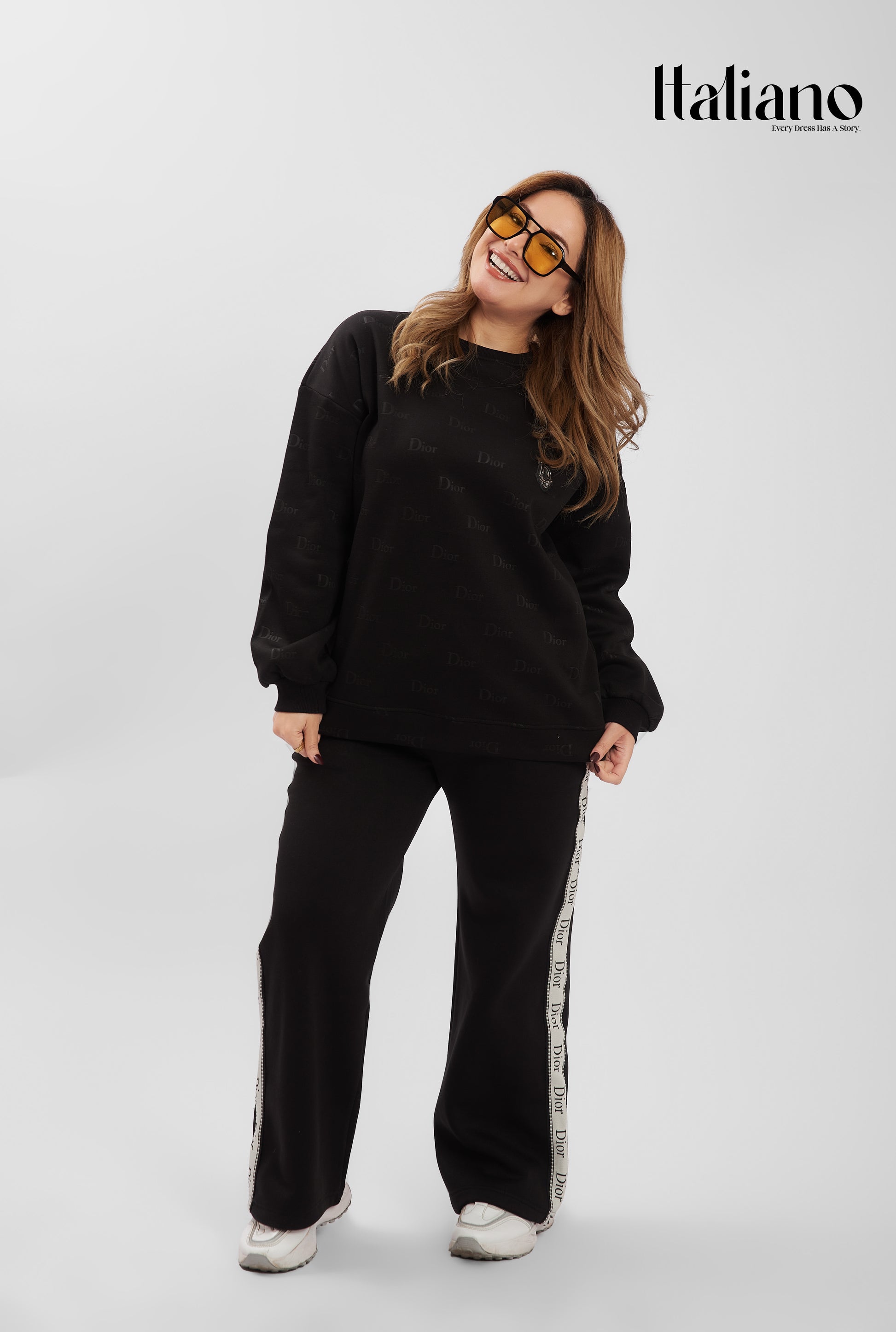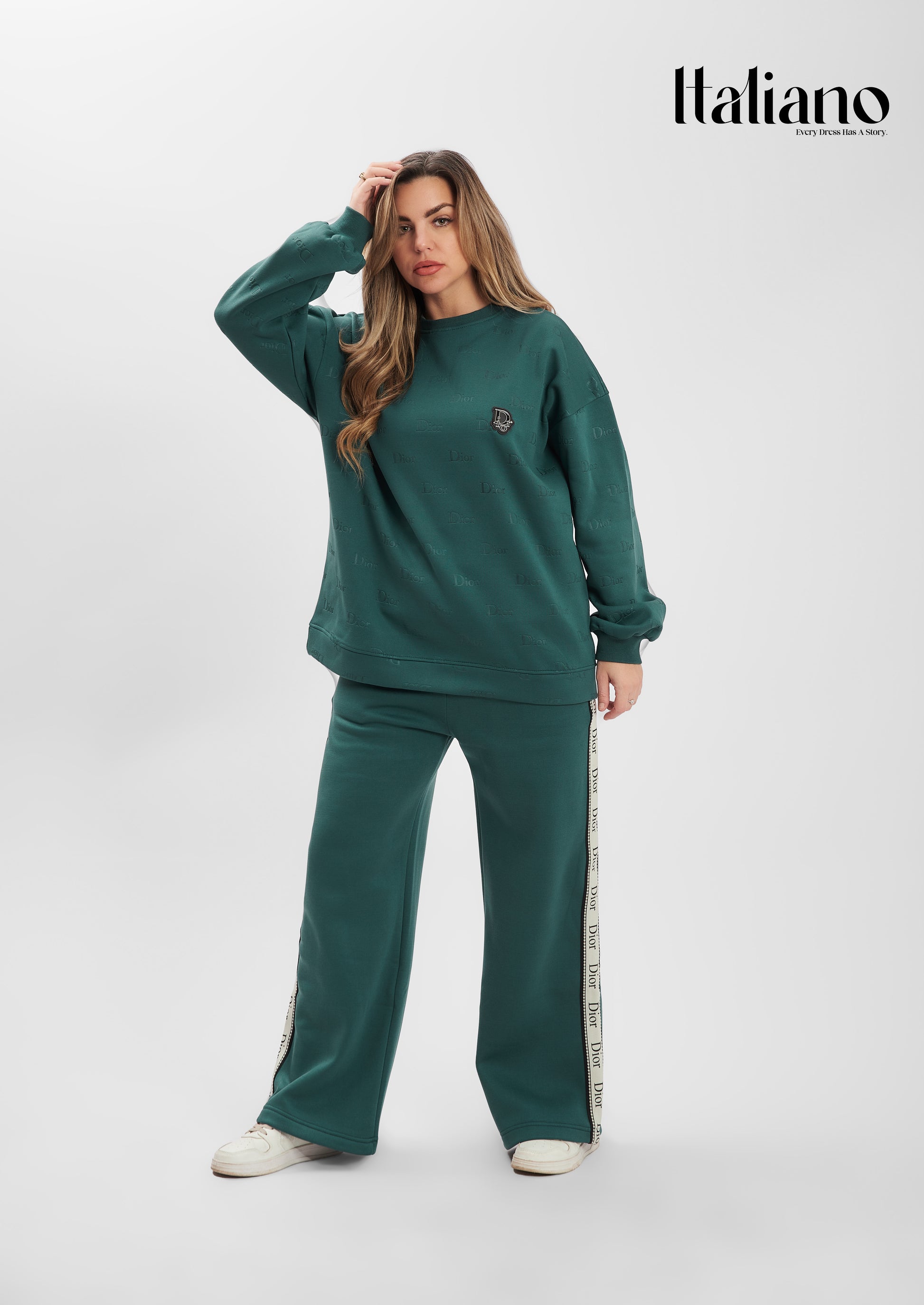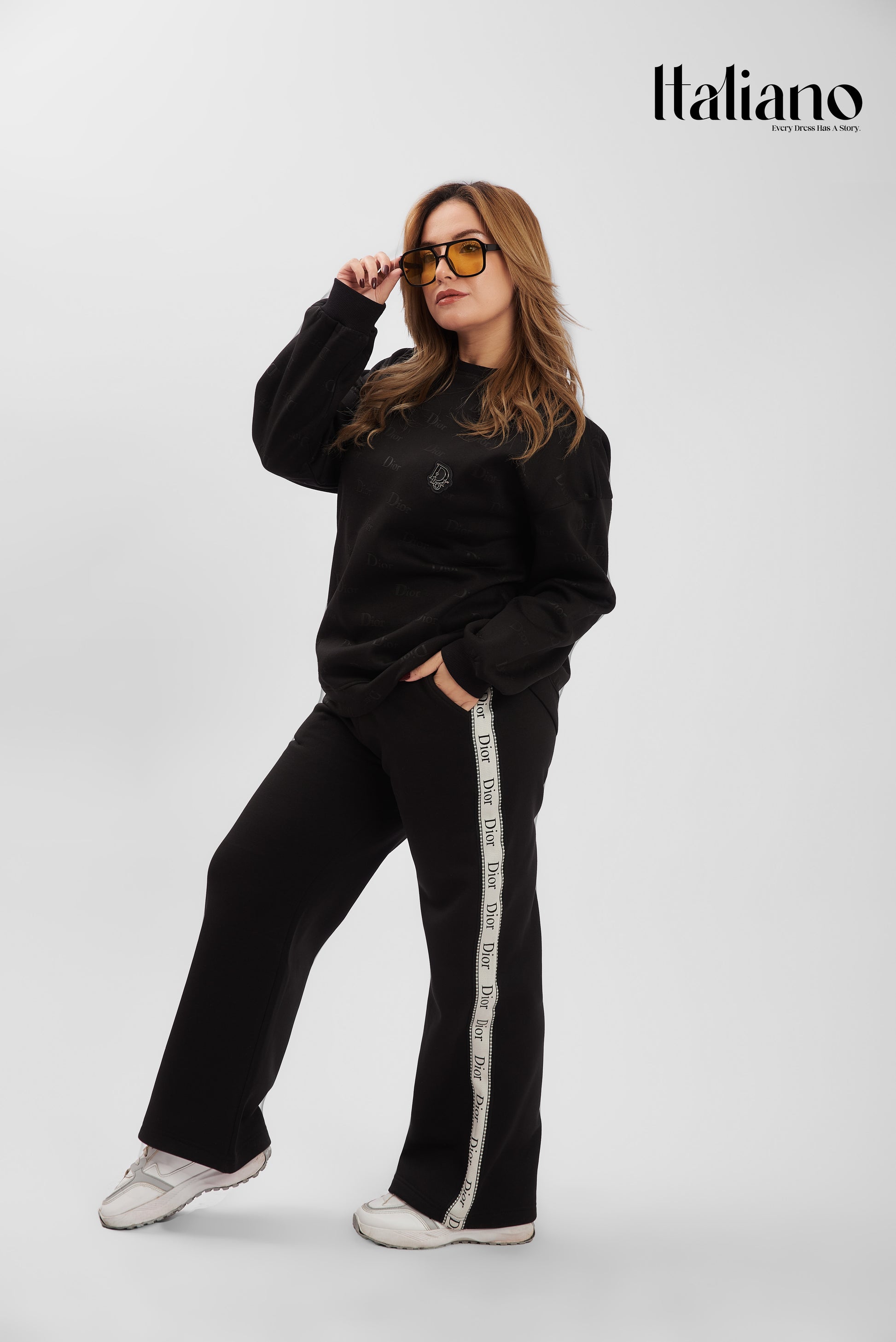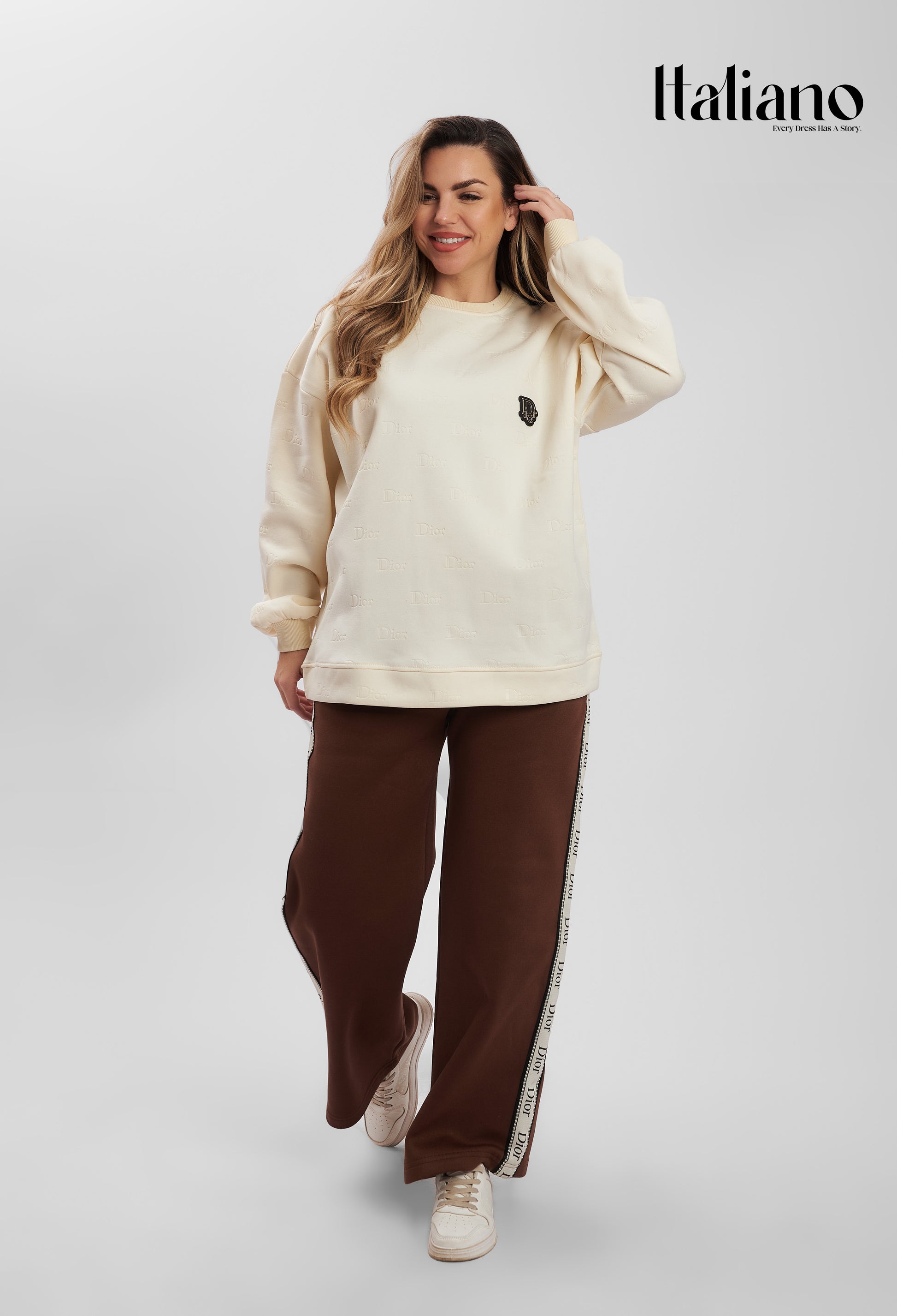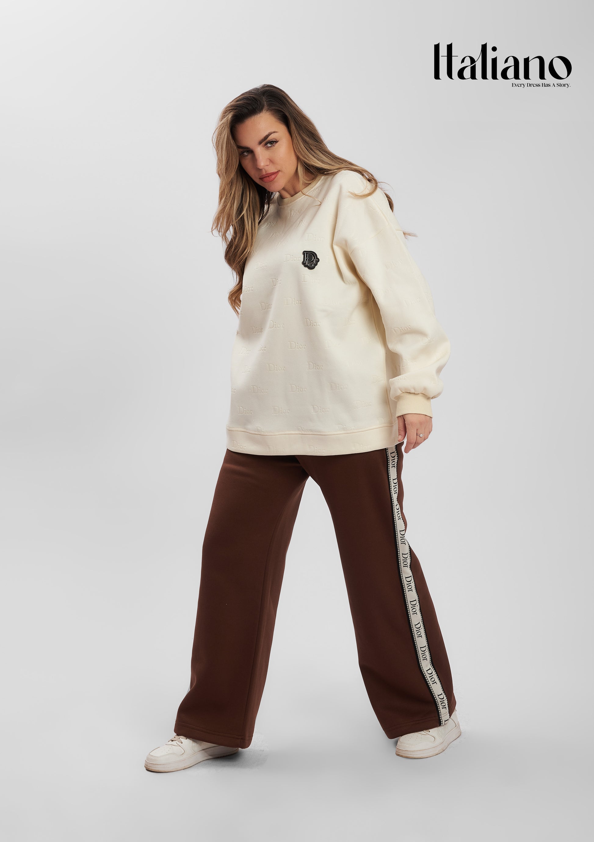 Re-define your casual elegance with Dior Signature Stripe Set. This minimalist round-neck set is elevated by premium side-taping on the trousers, inspired by high-fashion aesthetics.