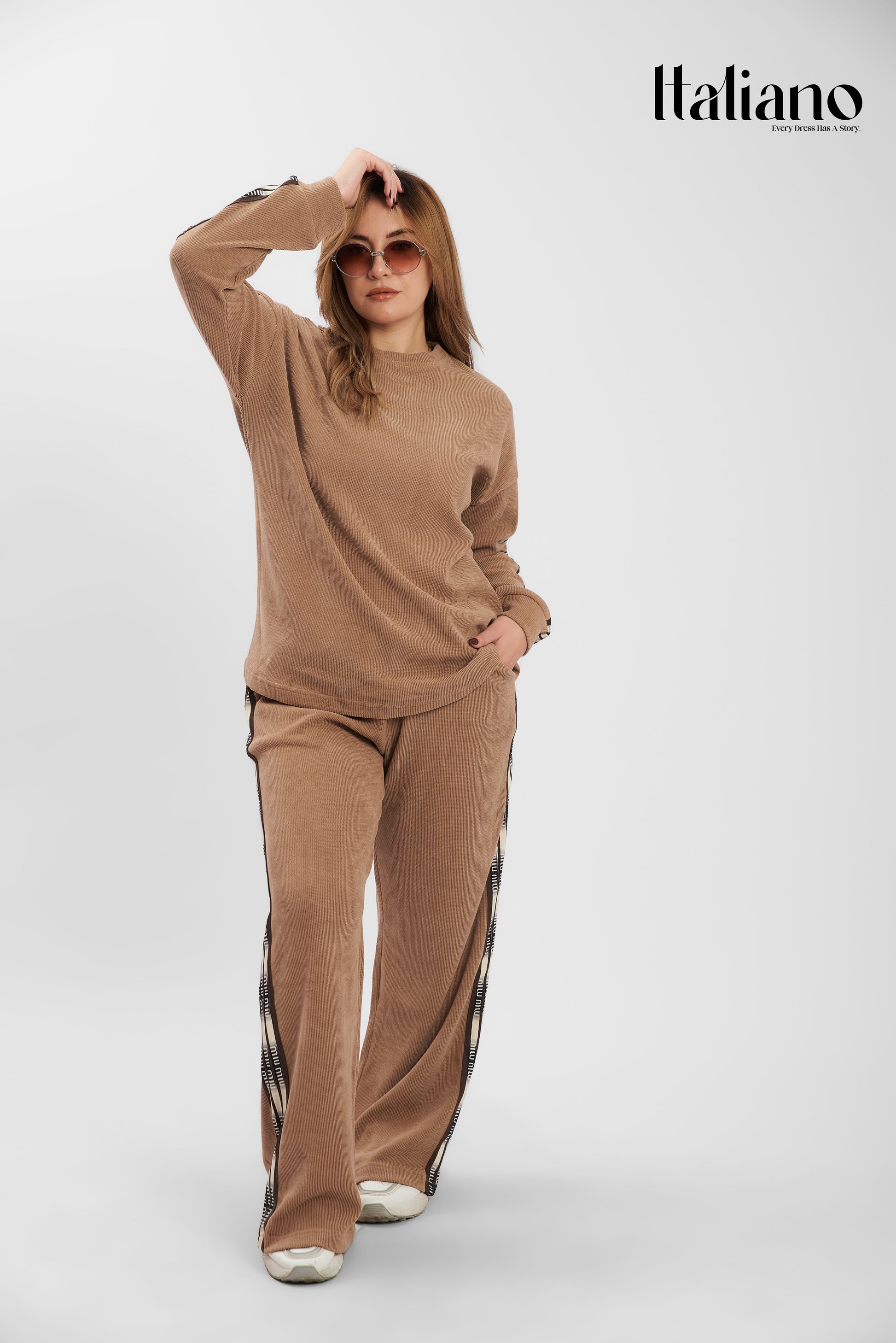 Step out in style with our Miu Miu Velvet Set, the perfect blend of luxury and casual vibes. This imported two-piece set is crafted from premium, high-quality velvet fabric that offers a soft touch and a rich look. Designed for the woman who wants to look effortlessly put-together while staying comfortable all day long.