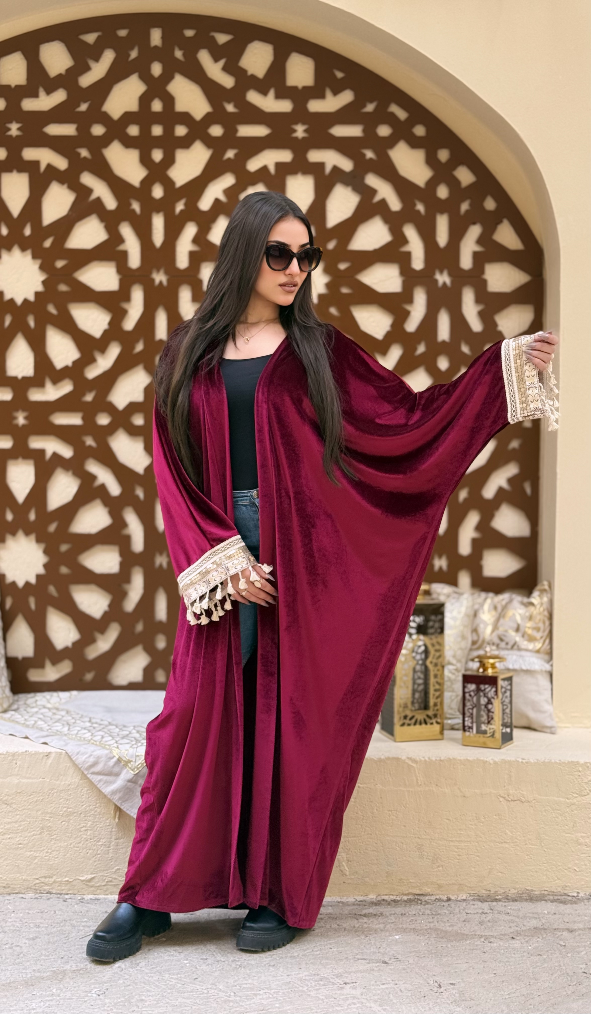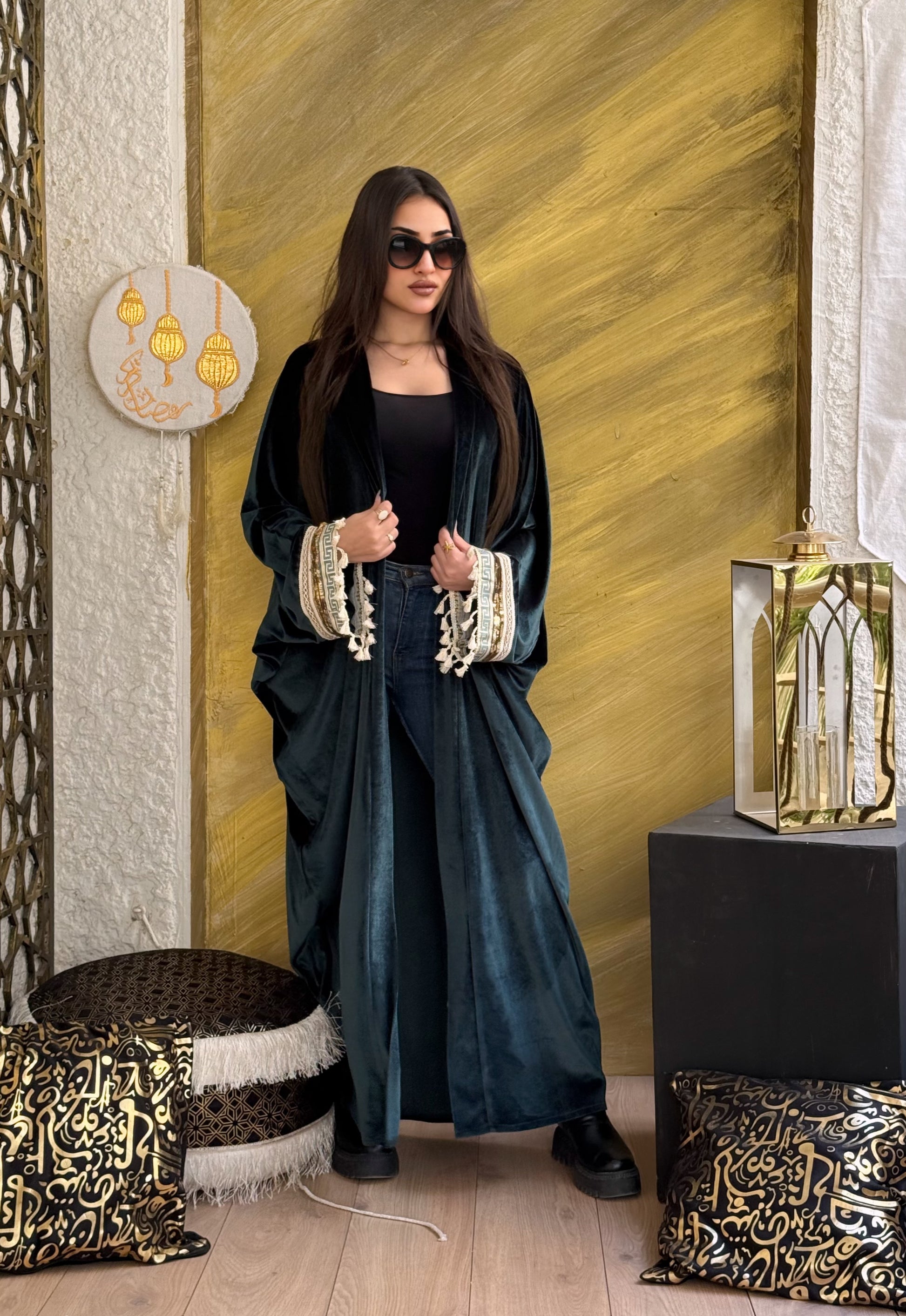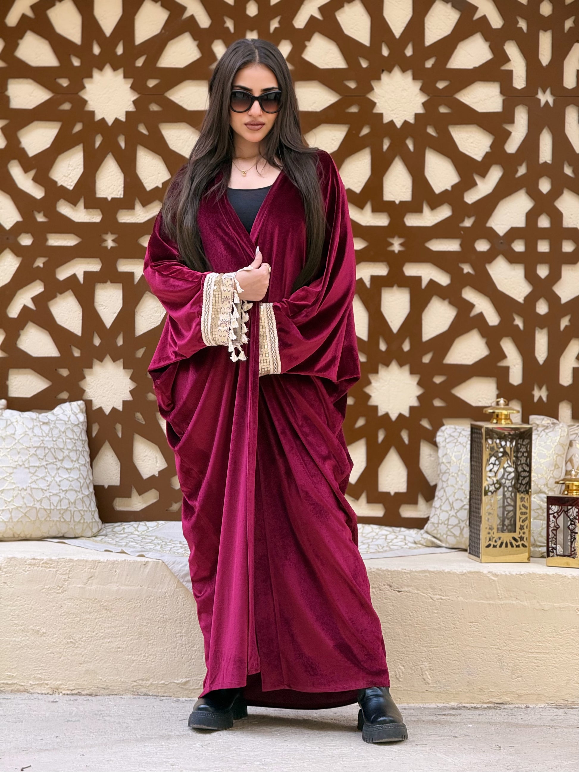 A stylish Ramadan velvet kaftan made from soft, warm velvet fabric.
